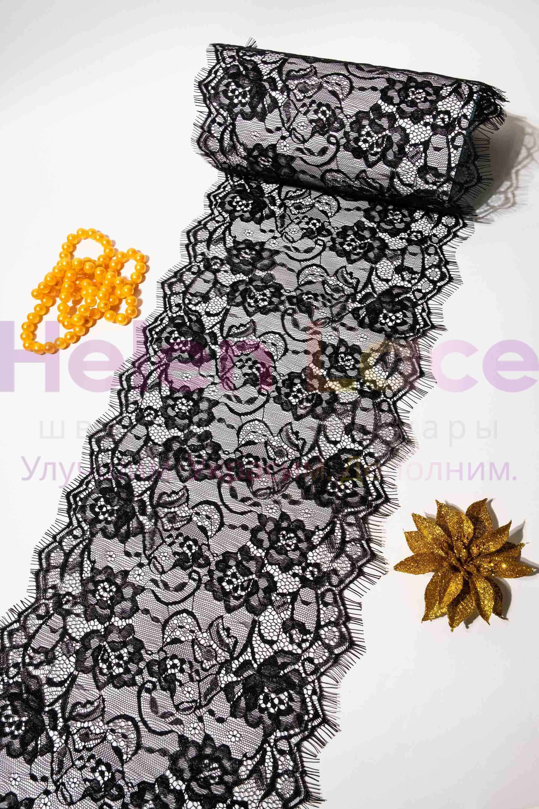 Рюш резинка одностронняя RR4, ширина 2 см, длина мотка 46м, цвет черный