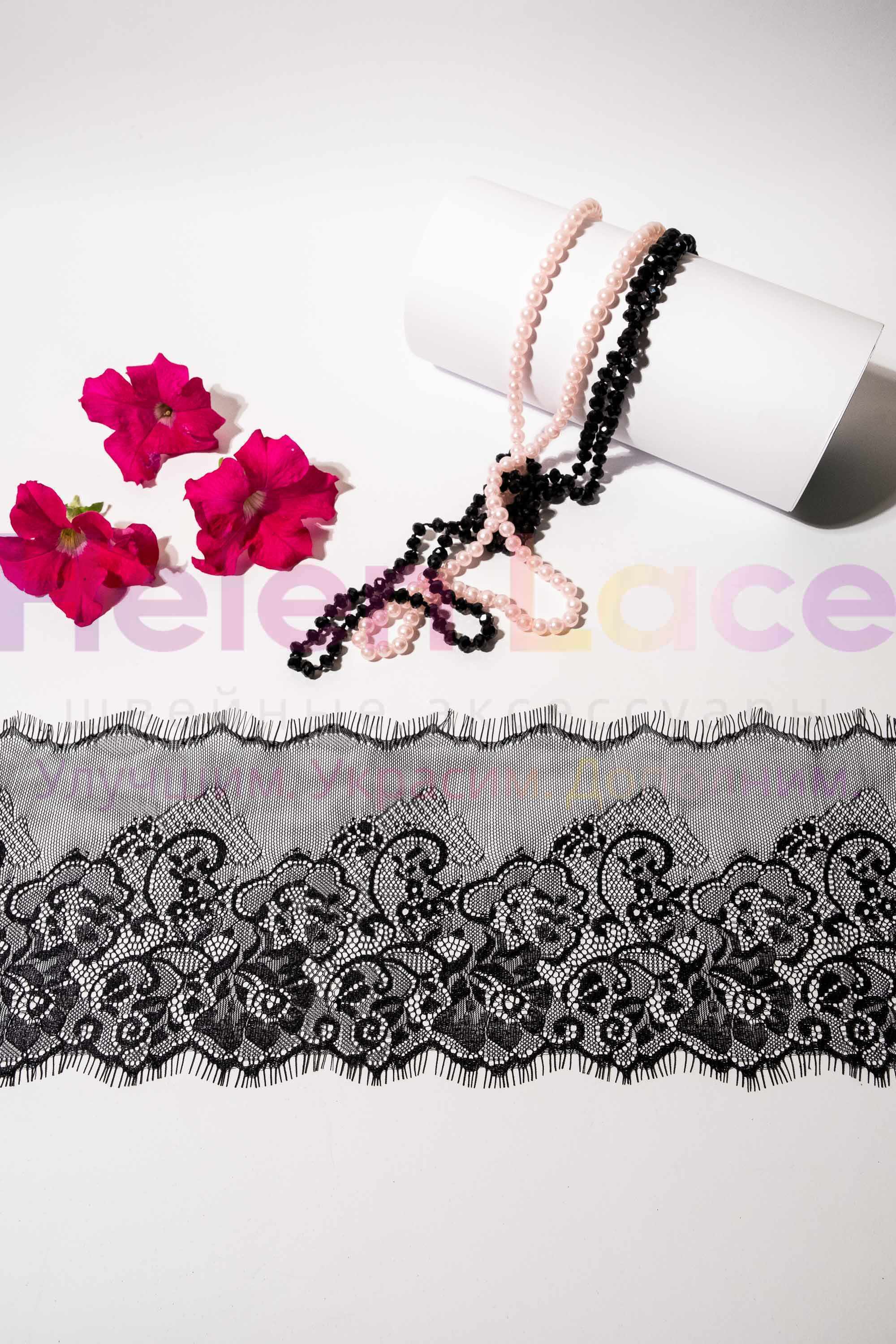 Тесьма с вышивкой маки, цвет черный, ширина 2,5 см (25мм), моток 25м TV06