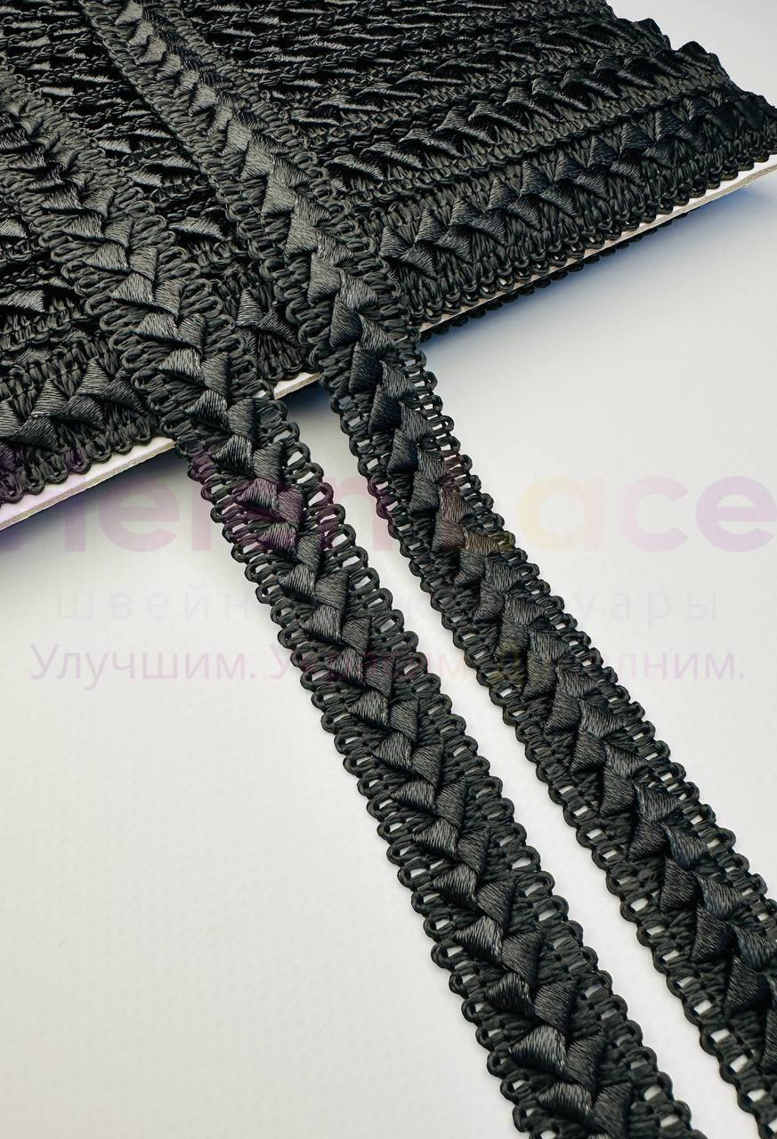 Тесьма зигзаг,цвет черный с серебром, ширина 0,9 см (9мм), намотка 33мTZ001