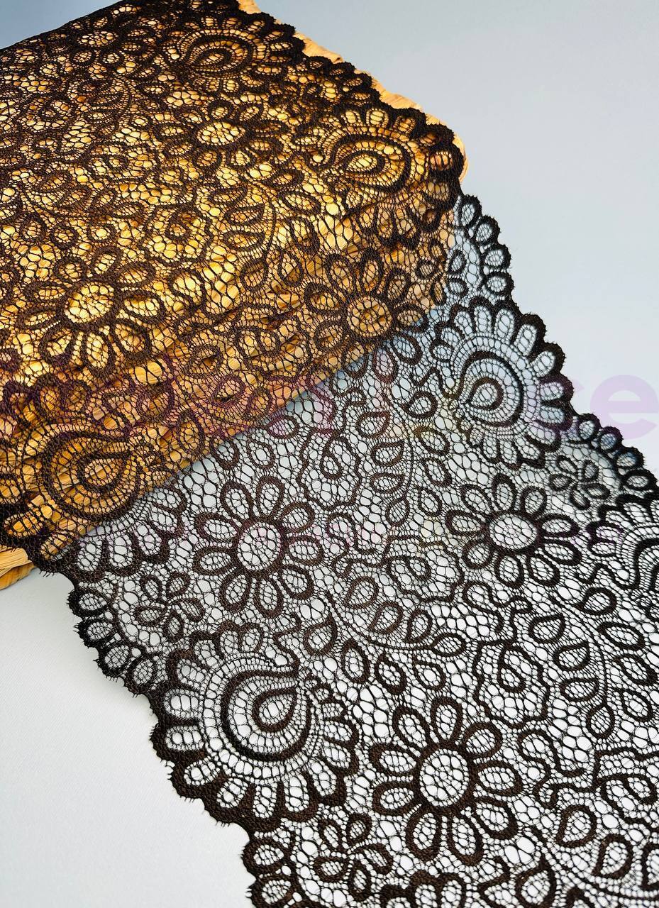 Кружево стрейч широкое, цвет шоколад , ширина 18 см, KZY35