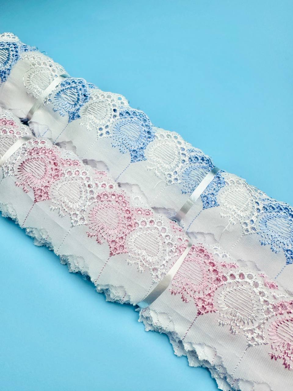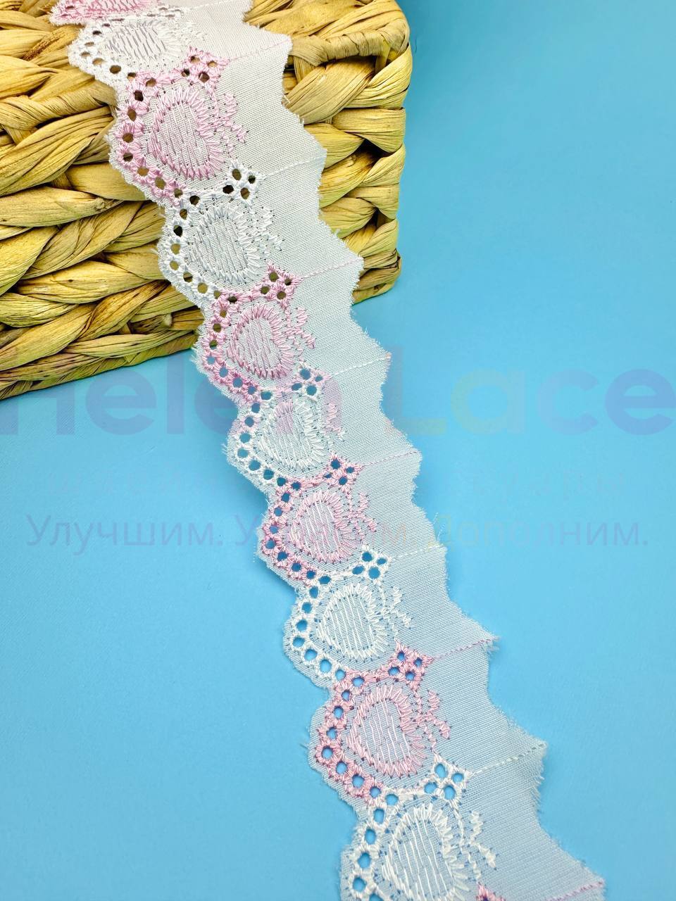 Кружево прошва с розовой вышивкой, ширина 4,5 см, длина 9м, PRZ14