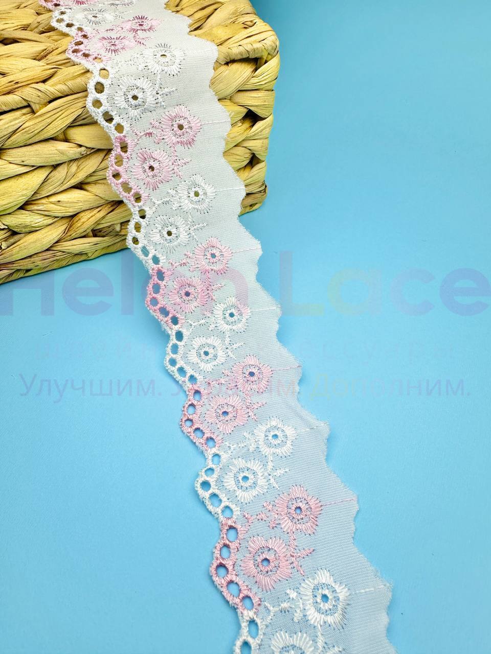 Кружево прошва с розовой вышивкой, ширина 5 см, длина 9м, PRZ5