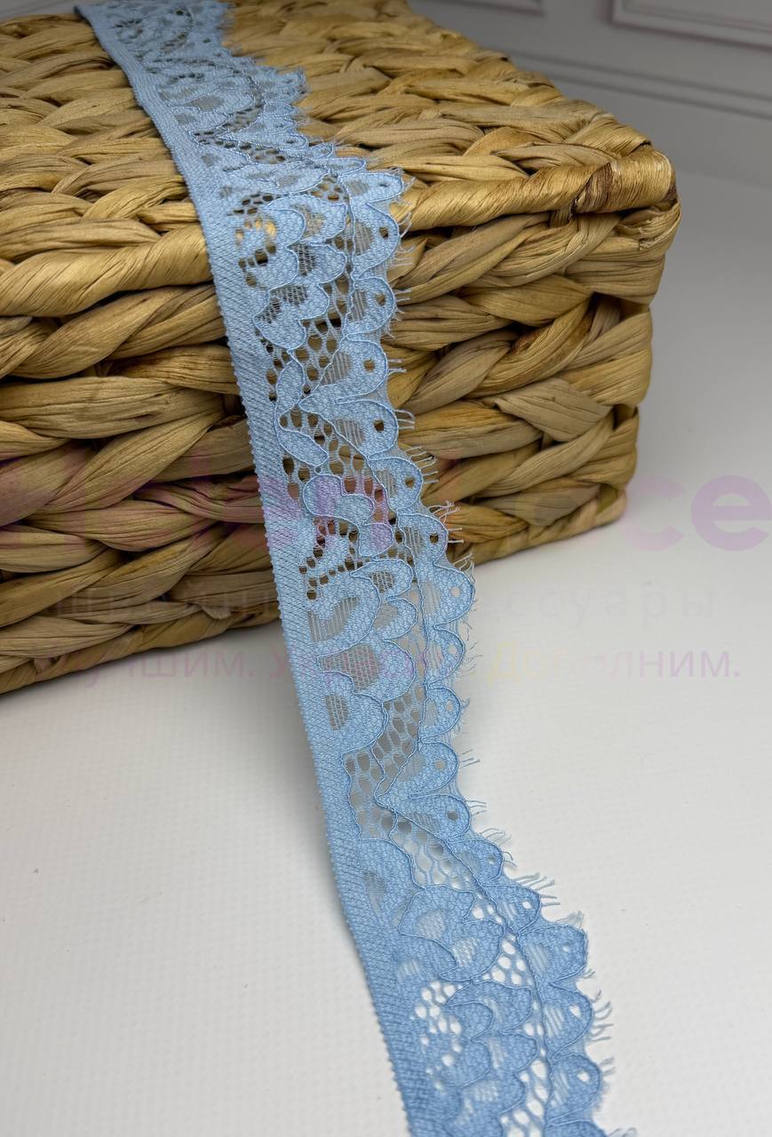 Кружево стрейч узкое, цвет голубой, ширина 4 см, KZY017