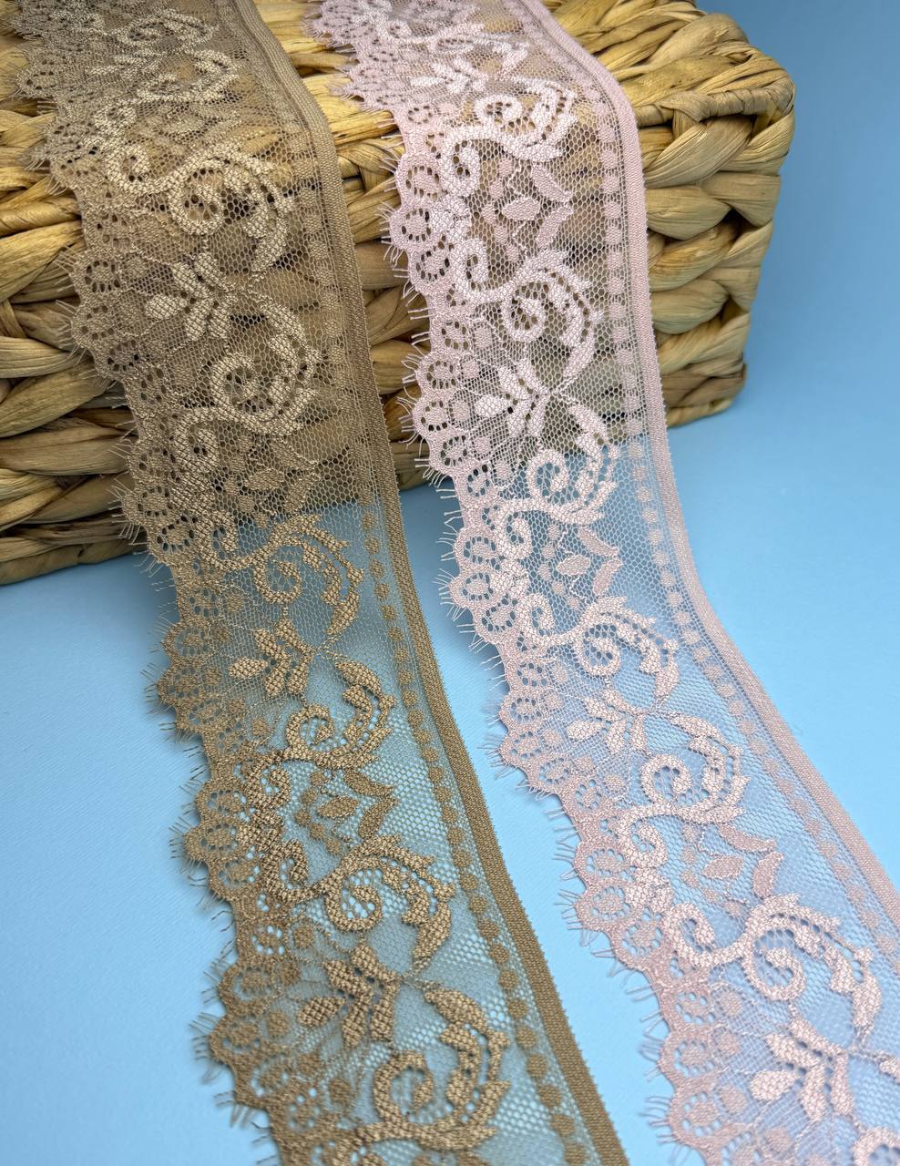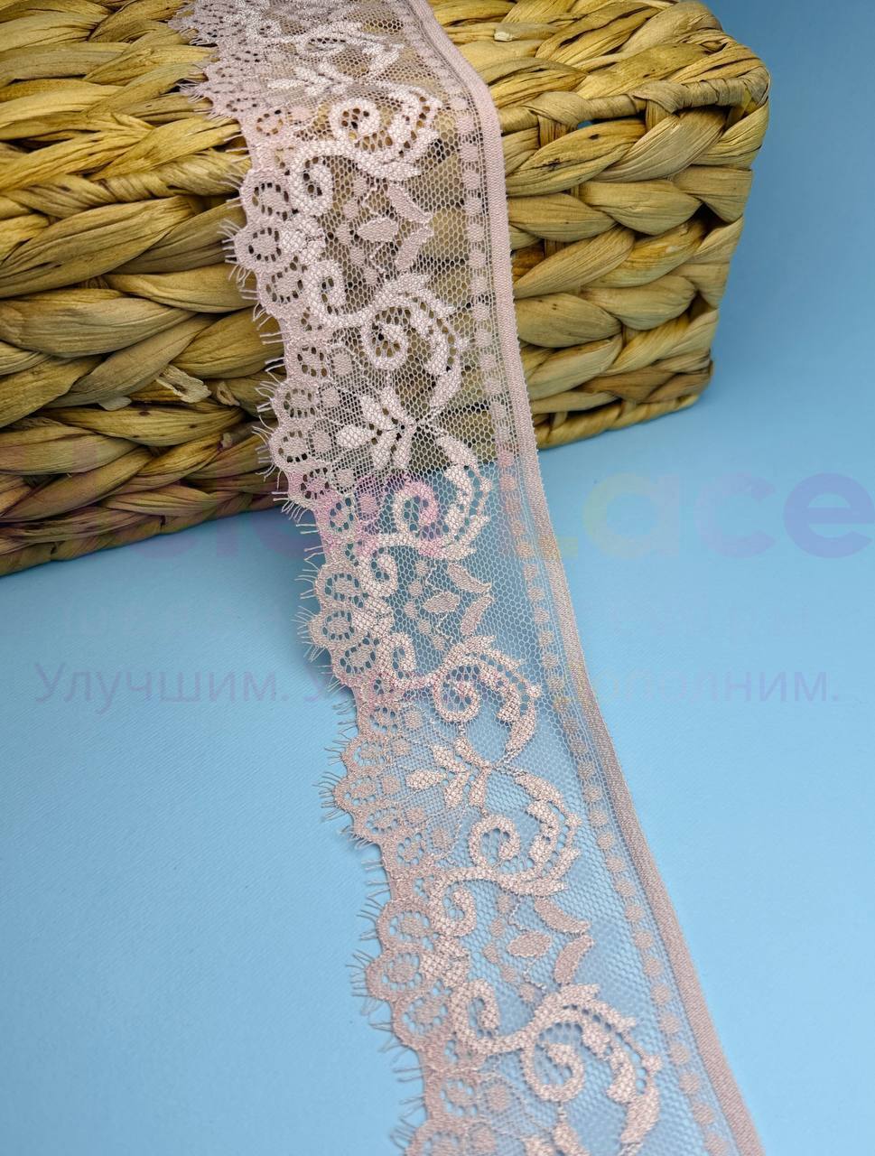 Кружево стрейч узкое, цвет пудра, ширина 6 см, KZY1512
