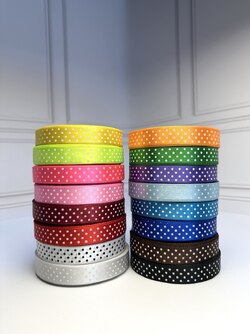 Лента атласная с принтом (горох), цвет насыщенно-розовый, ширина 1,5 см (15мм), бобина 23 м