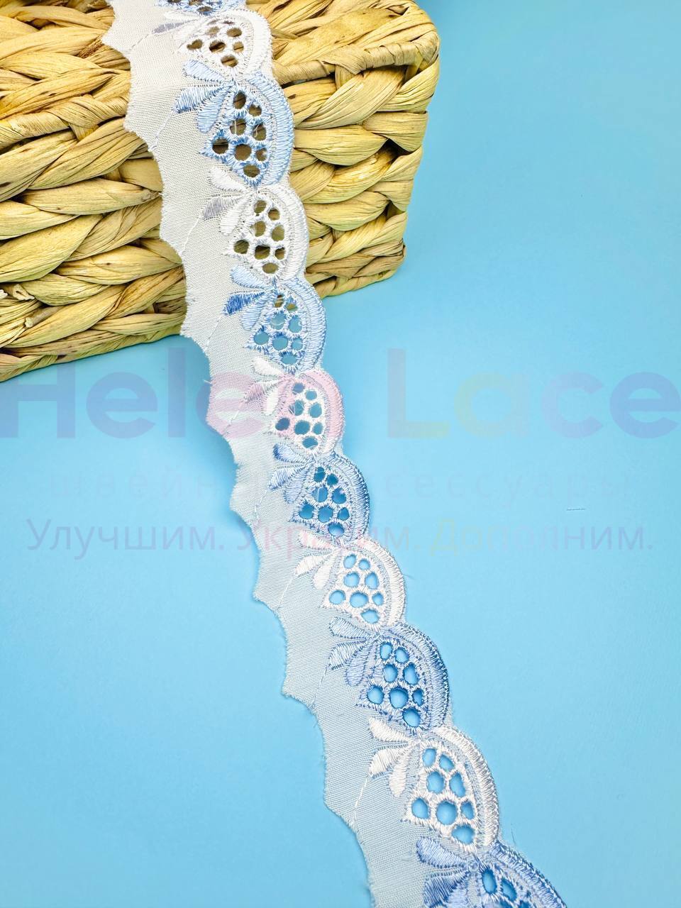 Кружево прошва с голубой вышивкой, ширина 4 см, длина 9м, PRZ12