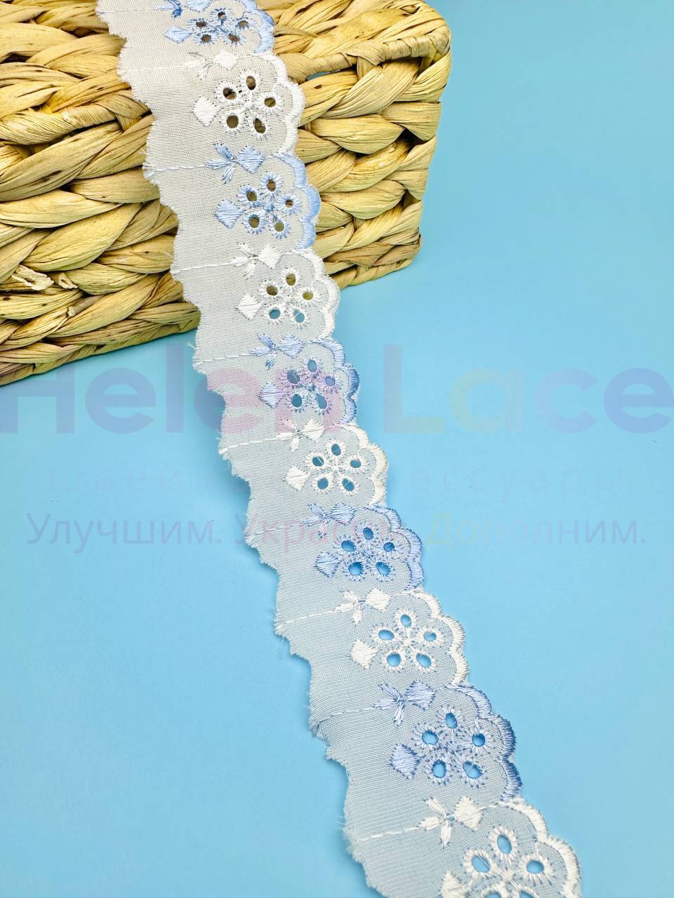 Кружево прошва с голубой вышивкой, ширина 4 см, длина 9м, PRZ4