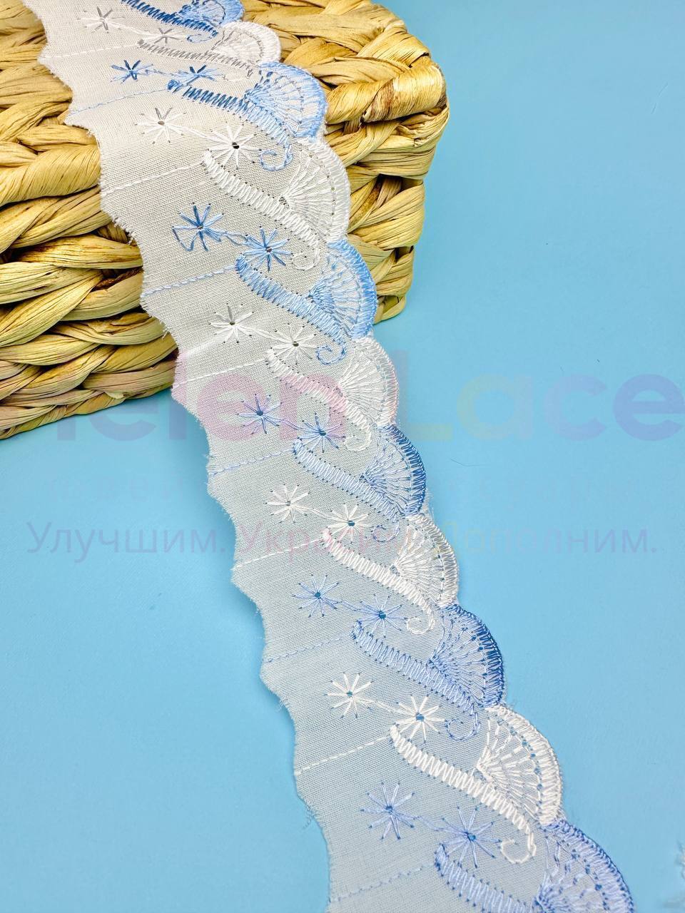 Кружево прошва с голубой вышивкой, ширина 6 см, длина 9м,PRZ29