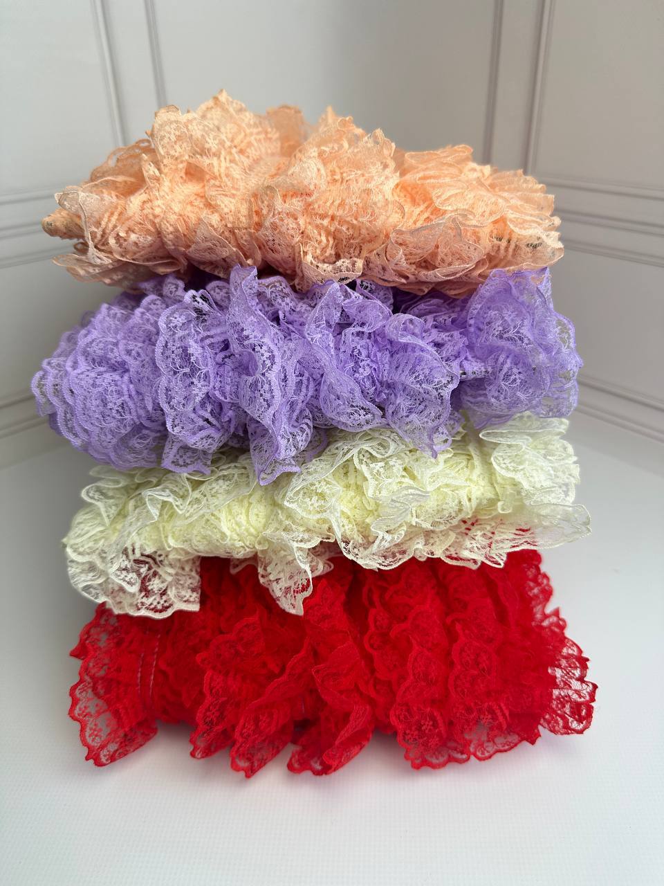 Кружево рюш одностороннее , ширина 4,5 см, длина мотка 23м, цвет