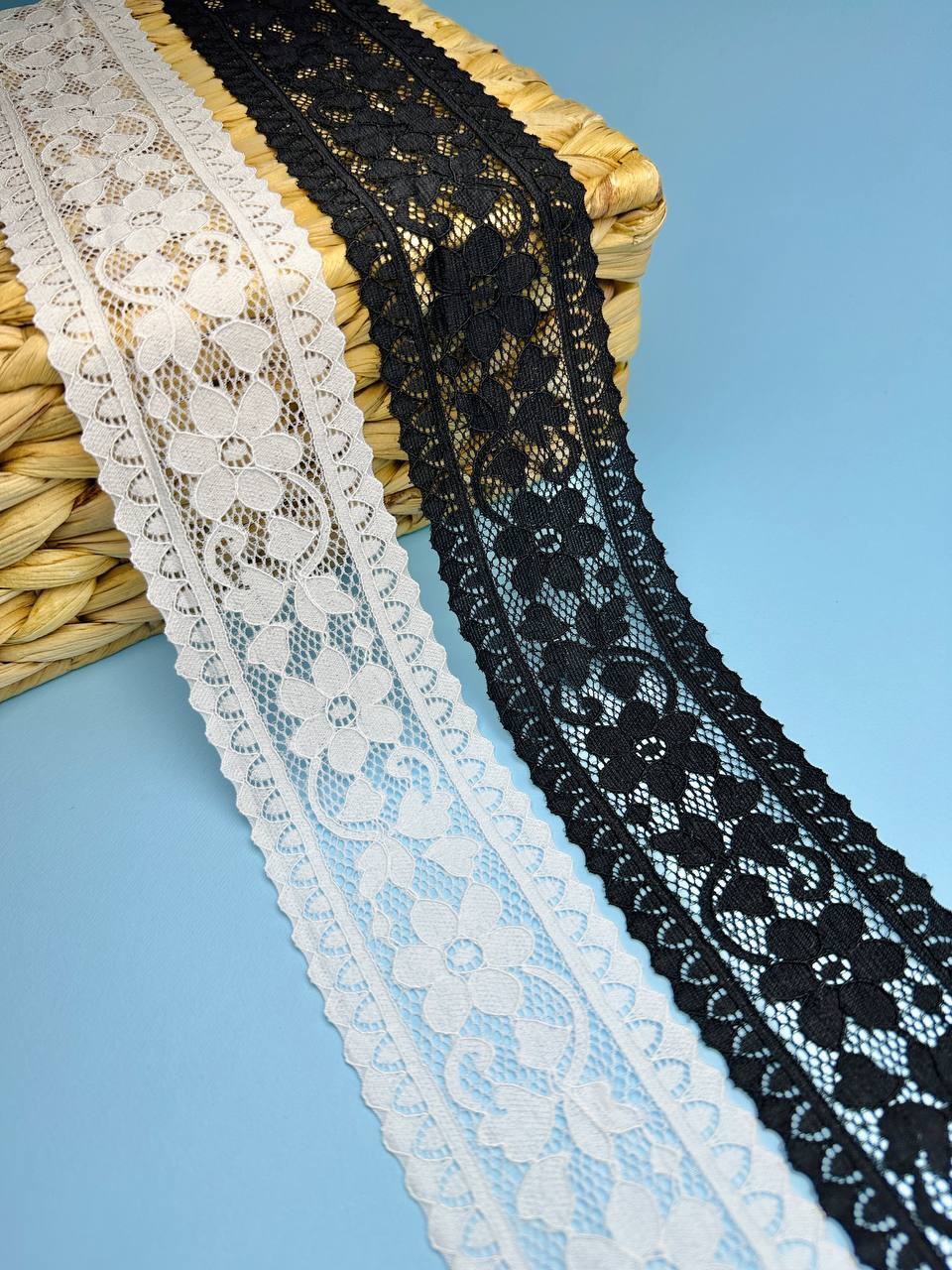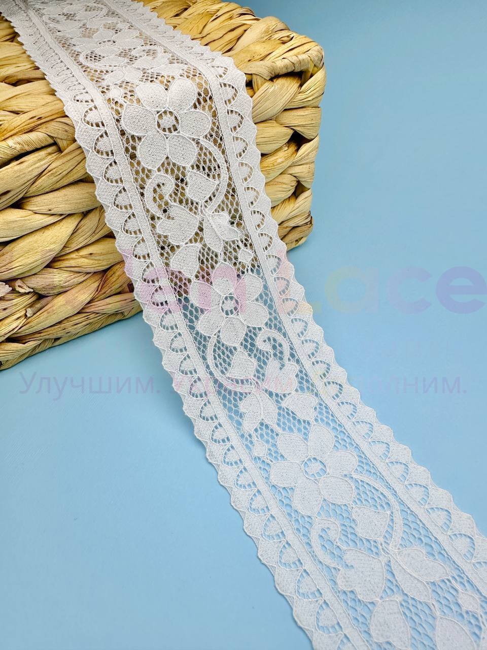 Кружево стрейч узкое, цвет молочный, ширина 6 см, KZY23